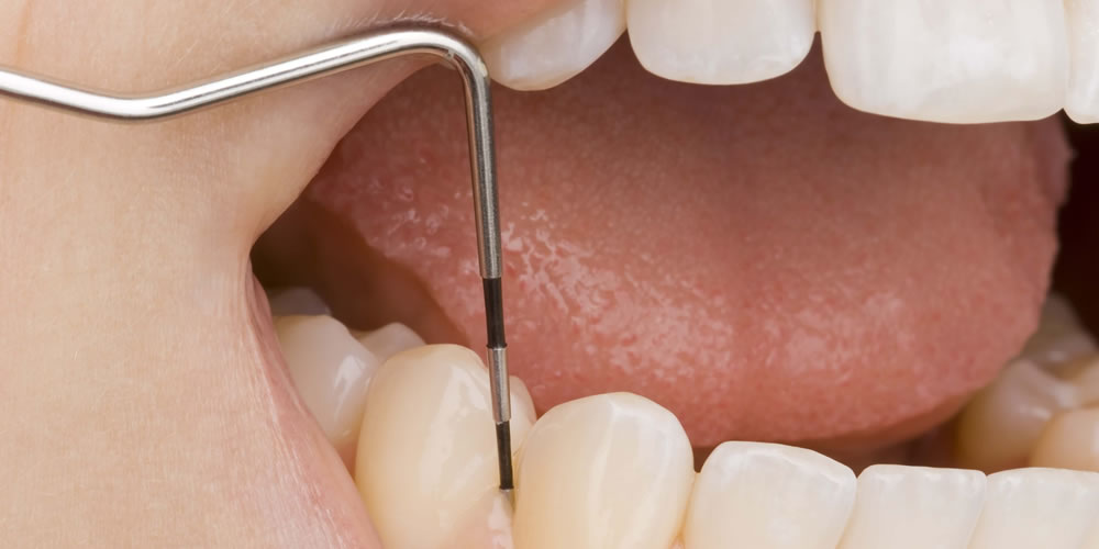 歯周病は歯周病菌が繁殖して歯茎などの歯周組織に炎症が起こる病気です。歯周病が進行すると、歯と歯茎の間にある歯周ポケットが少しずつ深くなっていくため、歯周ポケットの深さを調べるプロービング検査を実施します。