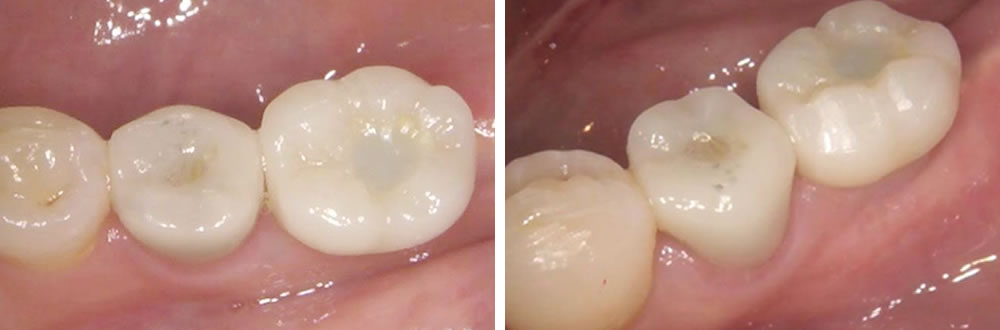 4ヵ月待機期間を設け、しっかりと骨と結合している事を確認した後に型取りを行いました。その後、完成した上部のジルコニアの人工歯を装着して治療完了です。審美面・咬合も回復し、患者さまに満足していただく事ができました。