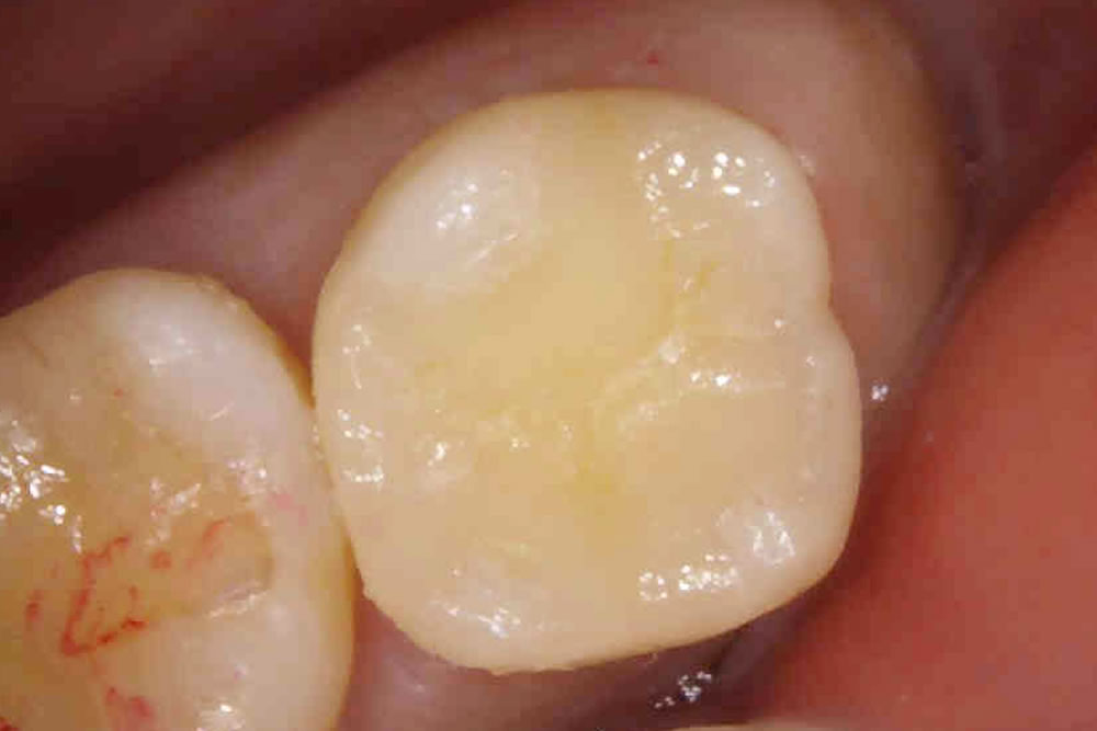 完成したセラミックインレーを装着し、咬み合わせを調整して治療完了です。