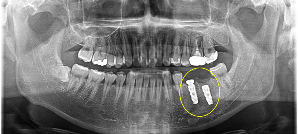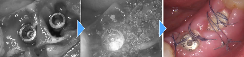 抜歯した部分に2本のインプラントを埋入し、骨造成も同時に行いました。