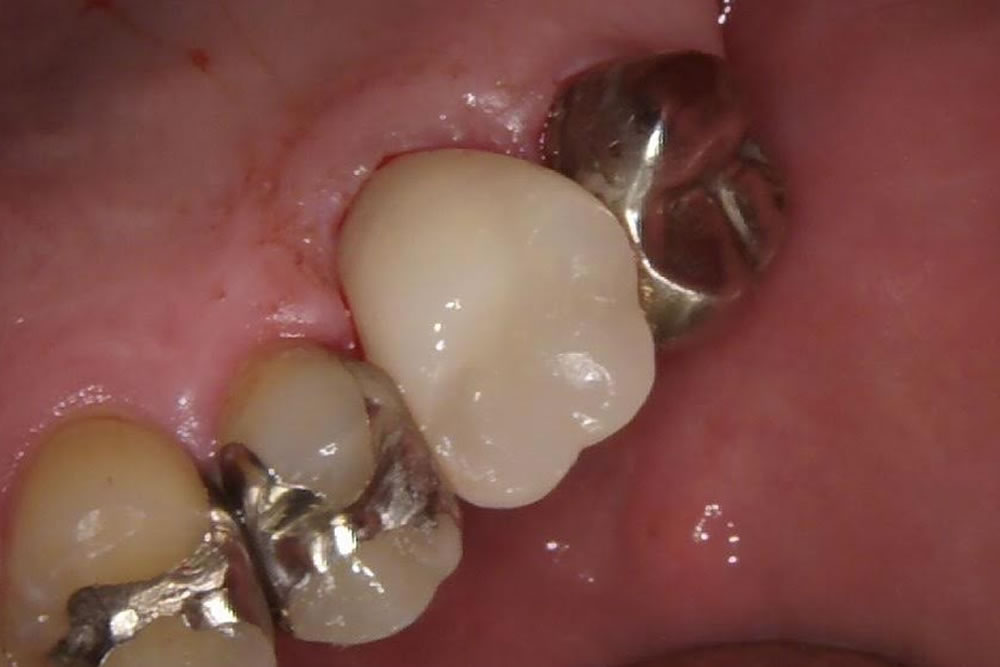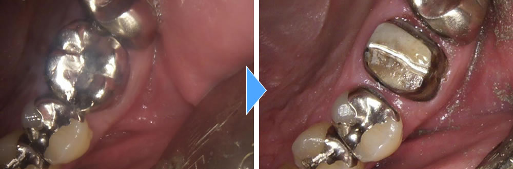 こちらの患者さまは銀歯に段差ができているのが気になるとの主訴で来院されました。まずは銀歯を除去し、中に入っている金属の土台も除去していきます。