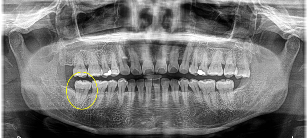 こちらは、右下一番奥の歯が噛むと痛いとのことで来院された患者さまです。