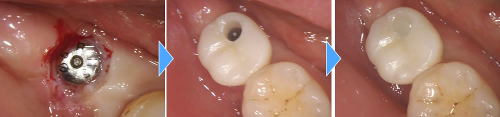 顎骨とインプラントの結合を確認後、上部構造を作製・装着して治療完了となりました。術後は痛みが出る前と同じように奥歯でしっかりと噛むことができるようになり、大変満足していただいております。