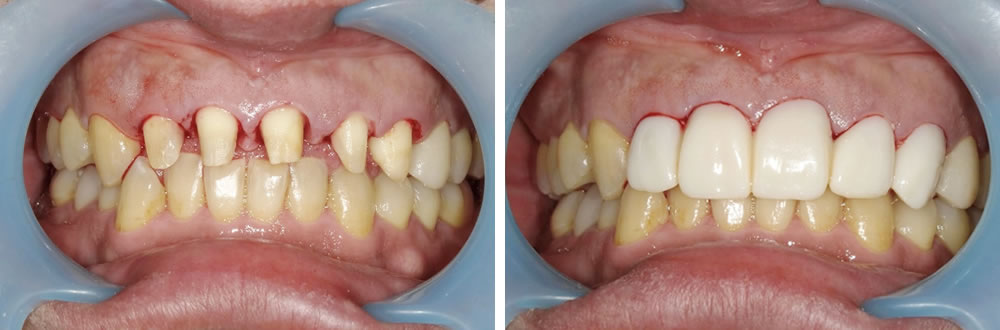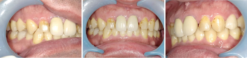 まずは今ついている保険の補綴物を除去し、施術を行う歯の虫歯を除去して下処置を行い仮歯を作成する所までを1度の処置で行いました。