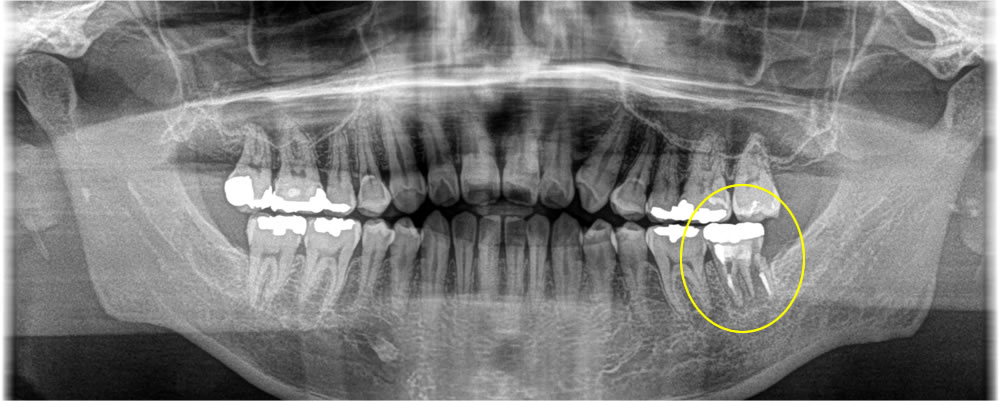 こちらは、左下1番奥の歯が噛むと痛いとのことで来院された患者さまです。