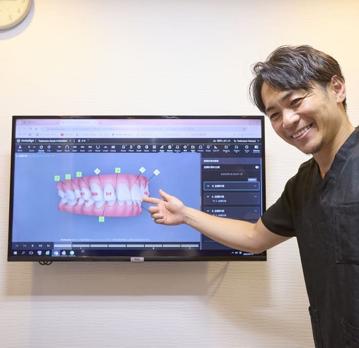「治療の椅子に座ったものの、何をされているのかよく分からなかった」という経験はありませんか? 当院ではそうした患者様の不安を解消するため、口腔内カメラを用いた「見える説明」を徹底しています。 ペン型の小さなカメラで、ご自身のお口の中の状態を撮影し目の前のモニターに大きく映し出します。 普段は見ることのできない歯の裏側や、虫歯の状態、歯石が付着している様子などをご自身の目で直接ご確認いただくことで、お口の現状や治療の必要性について深くご理解・ご納得いただくことができます。 治療前と治療後の写真を比較してきれいになった状態を見ることは、治療への満足度を高めるだけでなく今後の予防への意識を高めるきっかけにもなります。