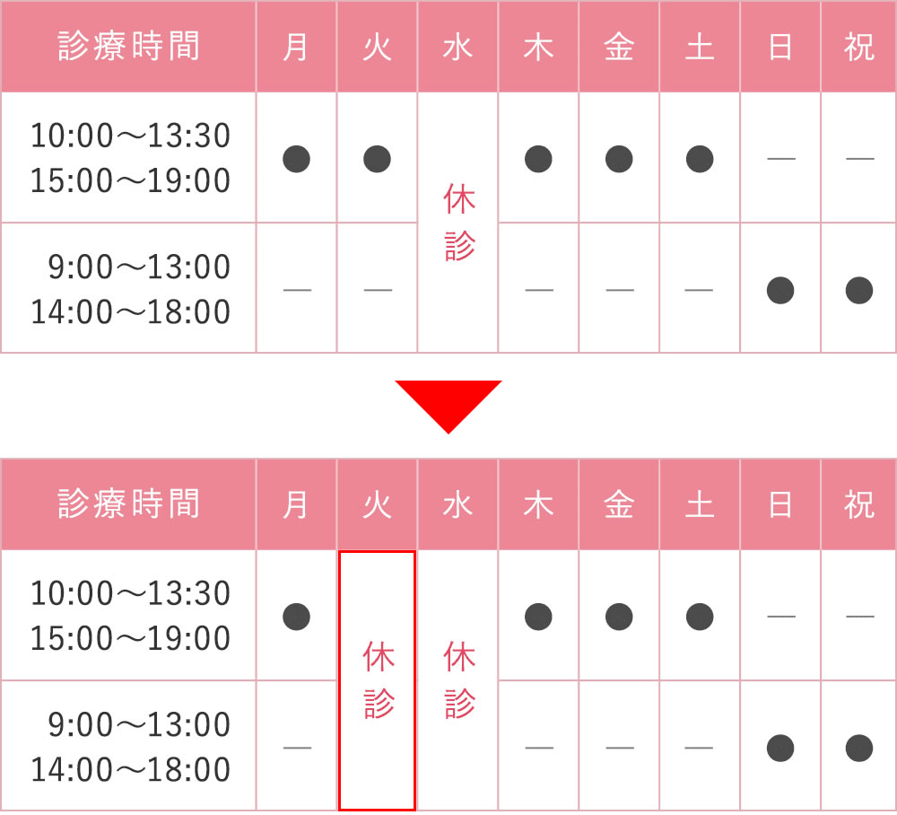 2024年4月30日2025年10月29日 2024年5月21日より診療日が変わります 日頃より祐天寺歯科をご利用いただきまして誠にありがとうございます。 2024年(令和6年)5月21日より、以下の通り診療日が変わります。患者さまにはご迷惑をお掛けしますが、ご理解賜りますようお願い致します。 投稿ナビゲーション 前へ次へ